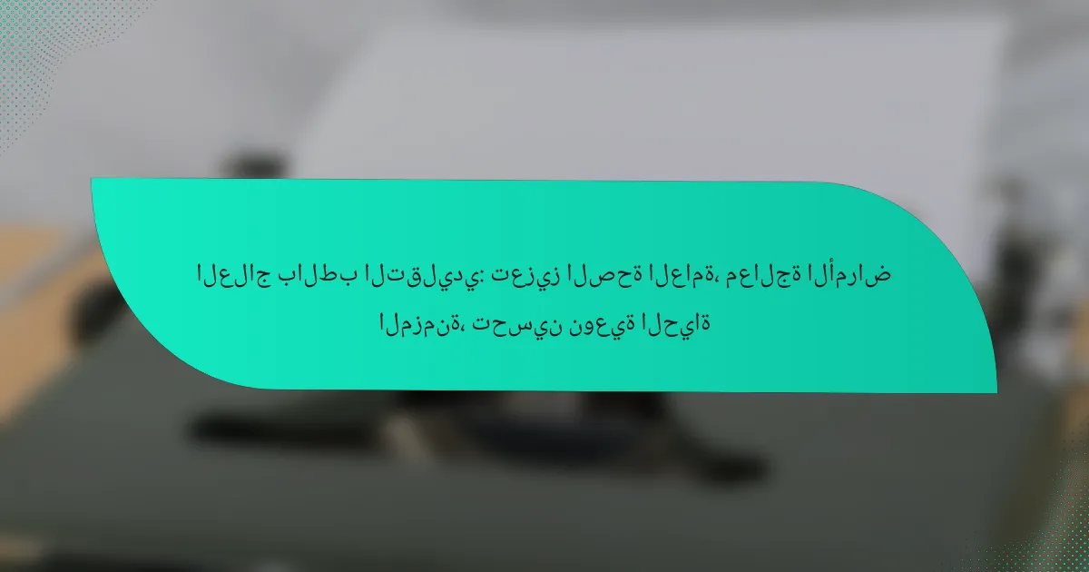 كيف يمكن تحسين نوعية الحياة من خلال الطب التقليدي؟